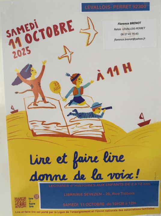 Le Samedi 11 octobre 2025, à la librairie SEVEZEN (25 rue trébois), de 10h30 à 12h, des lectures d'histoires seront proposées par les bénévoles de l'association Lire et Faire Lire.